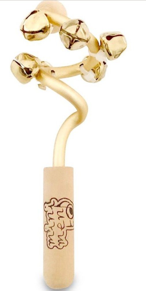 ARMAZÓN DE ALUMINIO CON FORMA DE ESPIRAL, SEIS CASCABELES MEDIANOS Y TERMINACIONES DE MADERA.