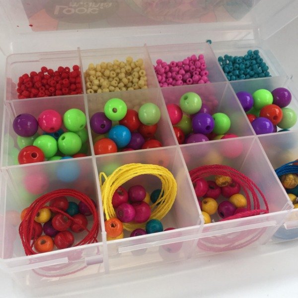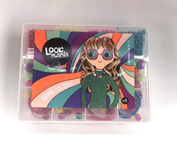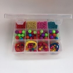 Medida: 17x13x4.5 cm. Viene con mostacillas de vidrio, acrílico y madera pintada con cordones de colores para armar tus propias joyas! Recomendado a partir de 6 años en adelante.