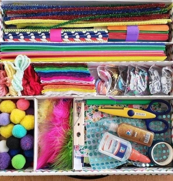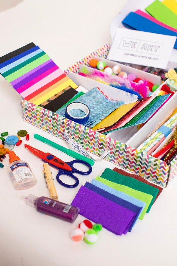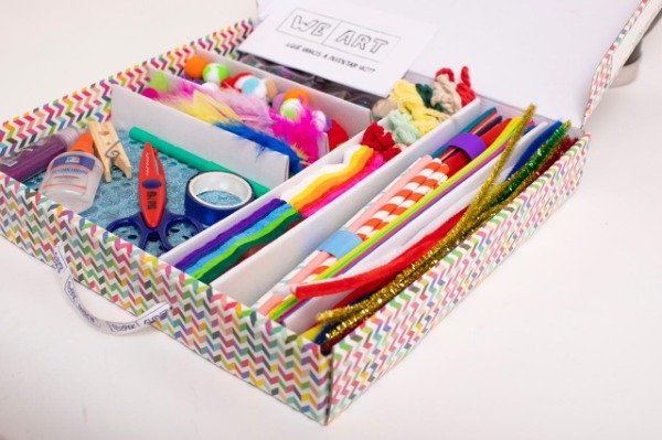 Una caja llena de materiales para que l@s niñ@s puedan desarrollar su imaginación y creatividad.