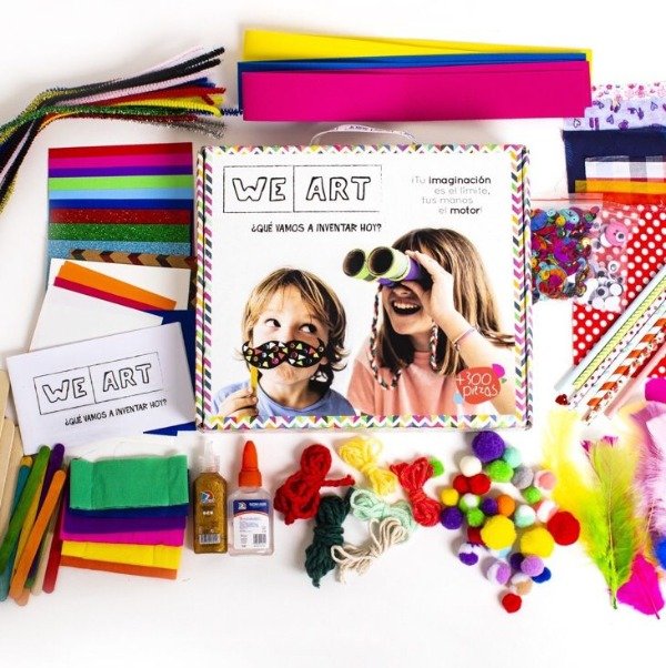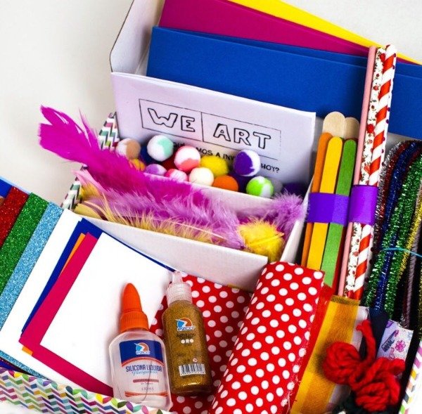 Una caja llena de materiales para que los niños puedan desarrollar su imaginación y creatividad.